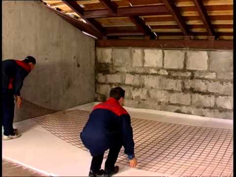- Уложите теплоизоляционный слой и произведите монтаж армирующей сетки под цементно-песчаную стяжку.