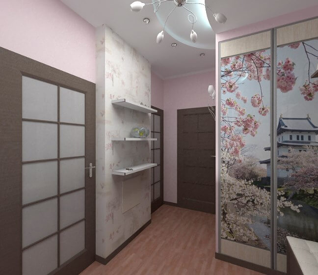 Даже очень маленькая прихожая имеет право на оригинальные идеи дизайна. Не обязательно ограничиваться урбанистическим направлением. Коридор в современном стиле может иметь японские мотивы — это очень эргономично, функционально и привлекательно. Однако, стоит учесть, что и дизайн других помещений должен носить восточный характер, иначе прихожая будет резко выбиваться из общего фона в квартире.