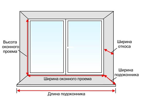 Выполняется замер ширины и высоты существующего проема окна. Размеры окна определяются следующим образом.
