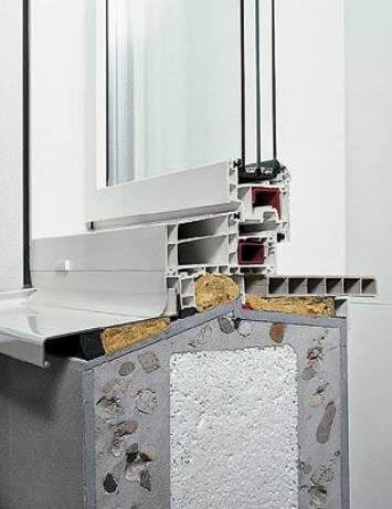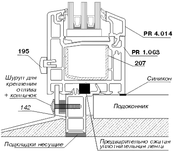 Обычно с наружной части оконной конструкции имеется паз для установки водоотлива. Согласно требованиям ГОСТ он должен быть обязательно запенен при установке, допускается также дополнительное его крепление шурупами для создания большей надежности конструкции.