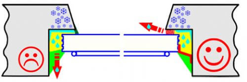 - с наружной стороны также по периметру должна быть приклеена мембранная влагостойкая и паропроницаемая клейкая полоса (ПСУЛ), способная выпускать пар наружу.