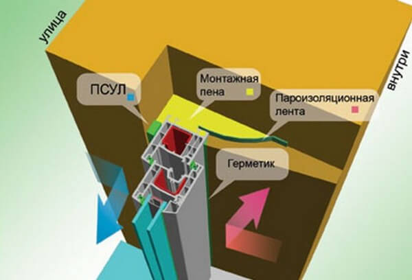 Поэтому для избегания возможного постепенного разрушения утеплителя и последующего промерзания и запотевания окон, ГОСТ предписывает обязательное изолирование шва со всех сторон. Для этого нужно: