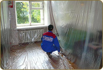 - стены, полы и все доступные конструкции накрыть пленкой или плотной тканью;