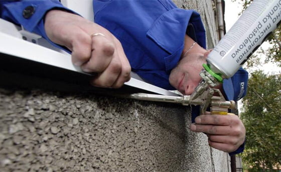 Процесс происходит при плотно закрытых створках и выполняется практически всегда монтажной пеной из полиуретана. Следует помнить, что вспененный пенополиуретан — материал проверенный и имеющий длительную историю использования, однако, он также обладает определенными минусами. В частности, он недостаточно стоек к воздействию открытого ультрафиолета и внешней среды.