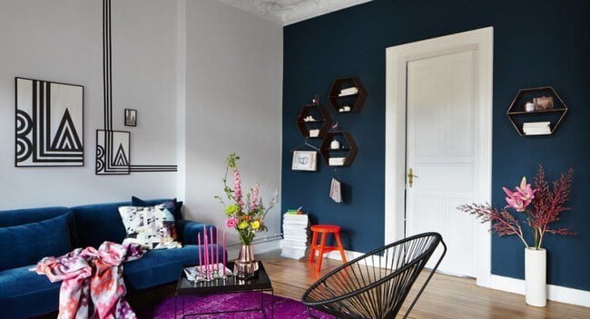 Яркие двери отлично вписываются в скандинавский стиль — он характеризуется белым фоном основной отделки интерьера с яркими элементами и деталями.