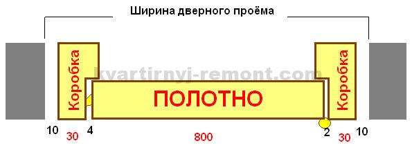 Применяется два главных способа вычисления необходимых размеров полотна, коробки и проема двери: